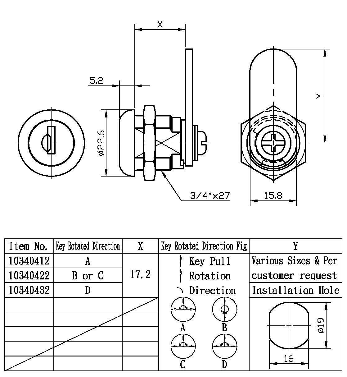 2. Same cutting hole with ABA cam locks (for example: 103403...)