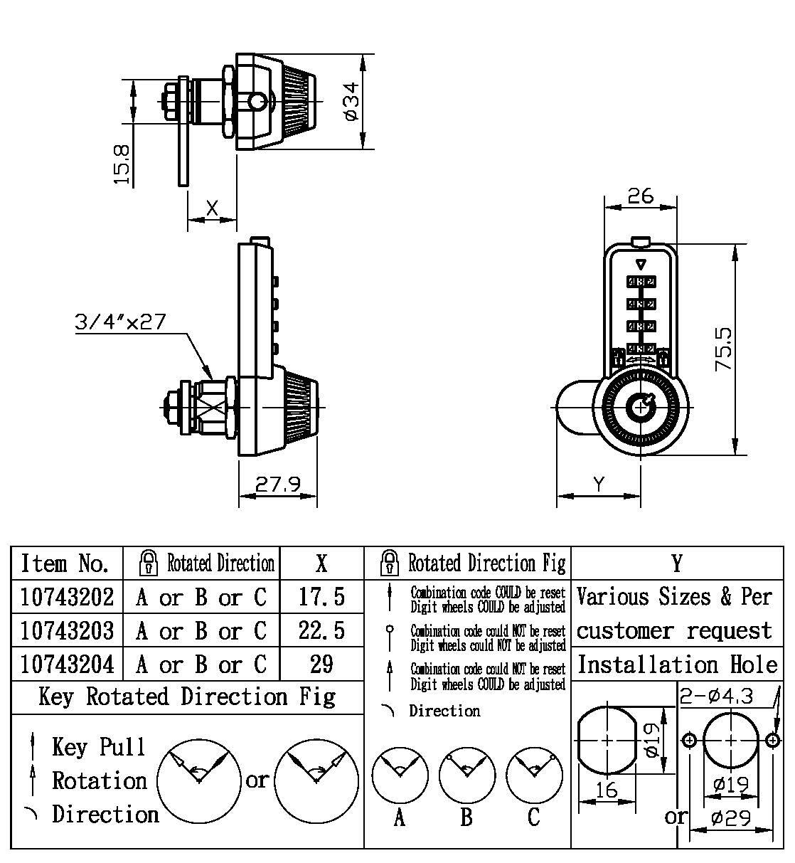 3. With 4 wheels design (combination codes could be changeable by customers)