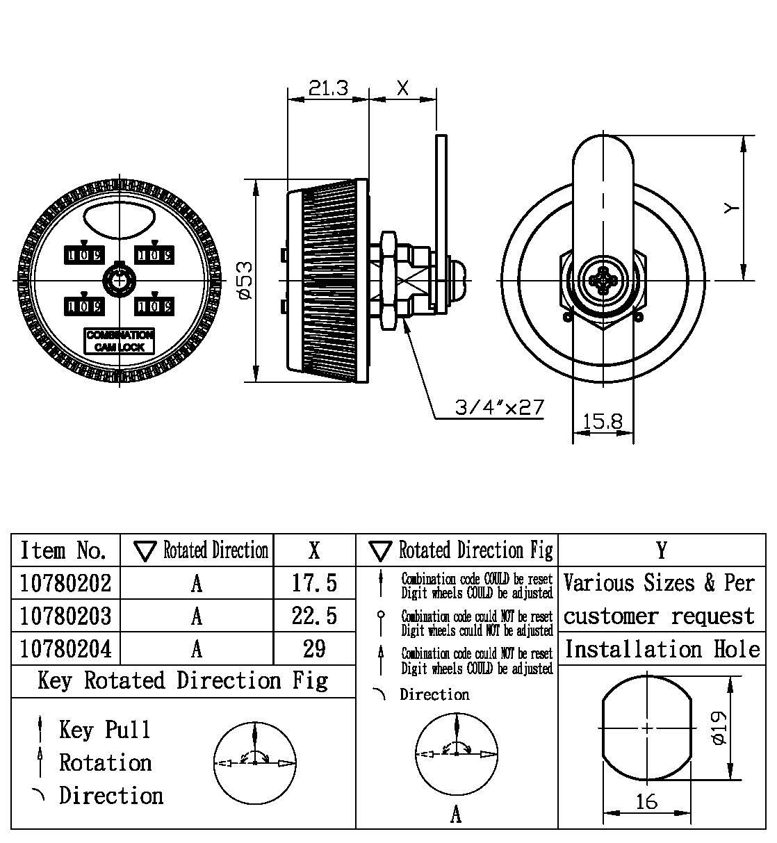 Combination Lock with Key-4 Digit Cam Lock