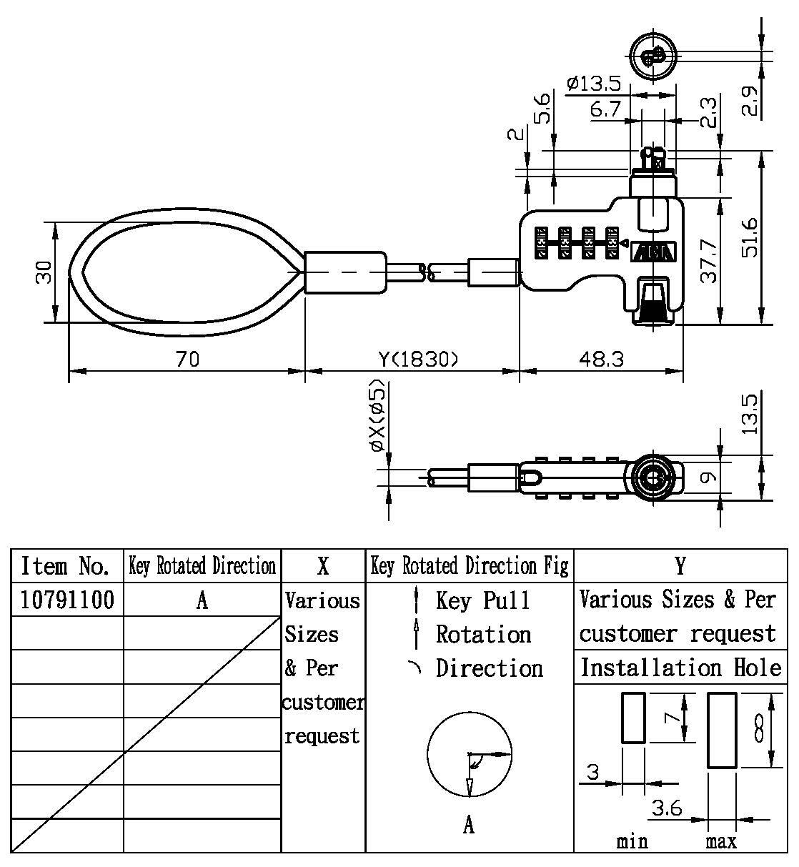 Combination Cable Lock with Key