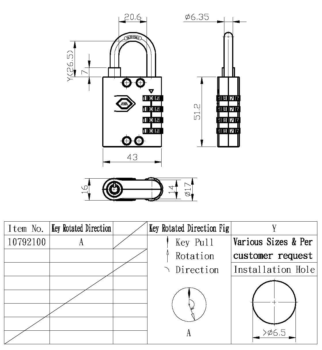 3.Shackle diameter: dia 6.35mm