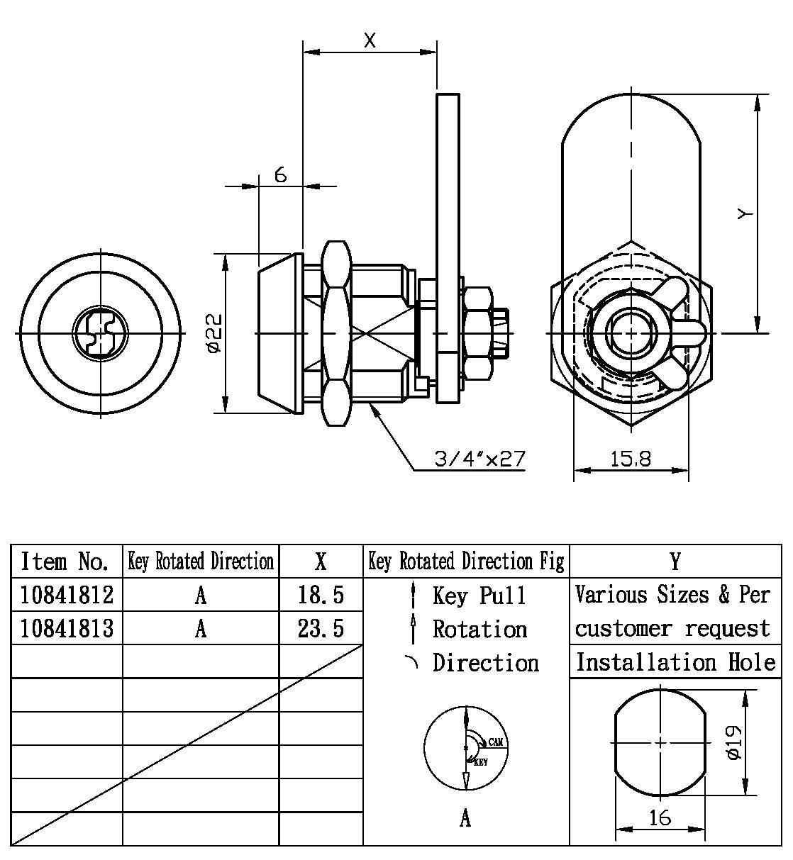 2. Same cutting hole with ABA cam locks (for example: 103403...)