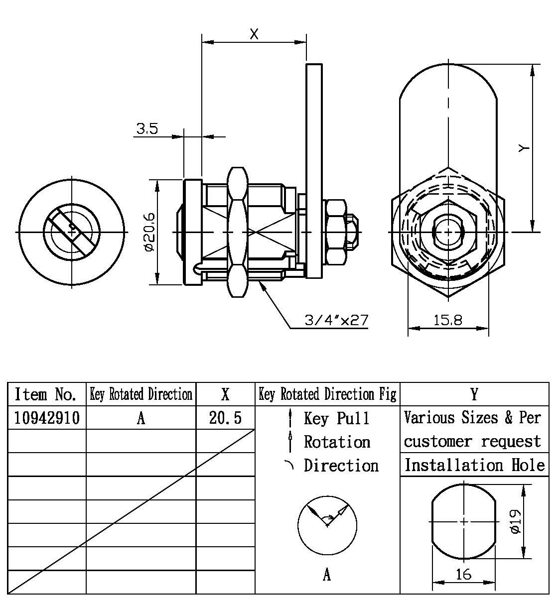 4. Almost the same spec. as Pagoda Cam Lock 101481, except the lock head is a little bigger