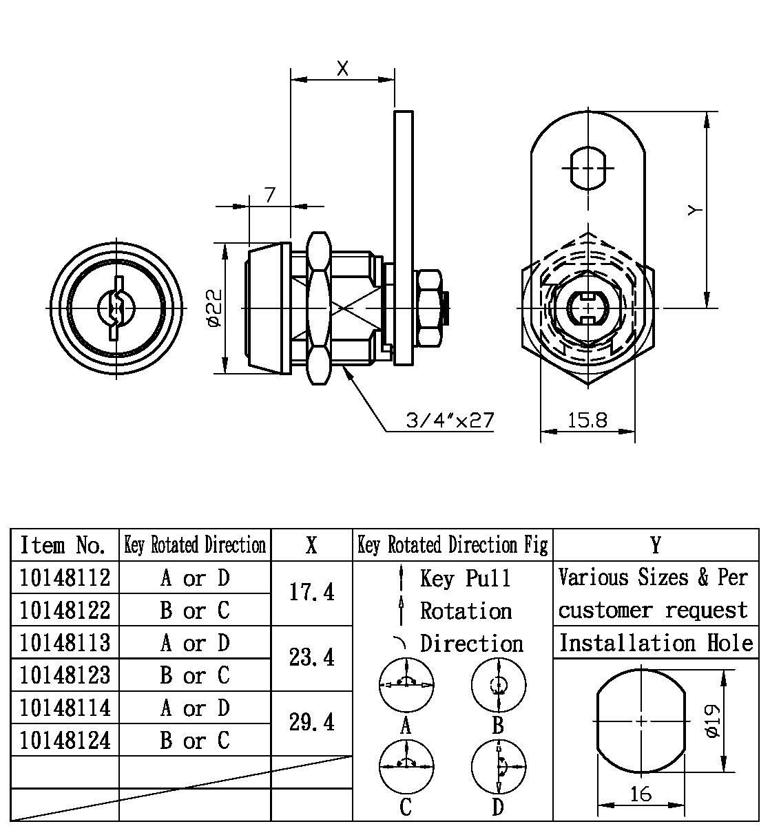 4. Almost the same spec. as Pagoda Cam Lock 101481, except the lock head is a little bigger